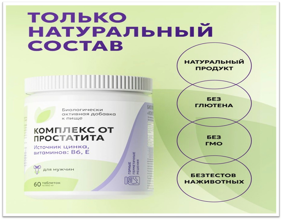 КОМПЛЕКС ОТ ПРОСТАТИТА - 100% табигый продукт. Анын курамында гормондор, боёктор жана химиялык заттар жок, көз карандылыкты жана аллергияны пайда кылбайт!
